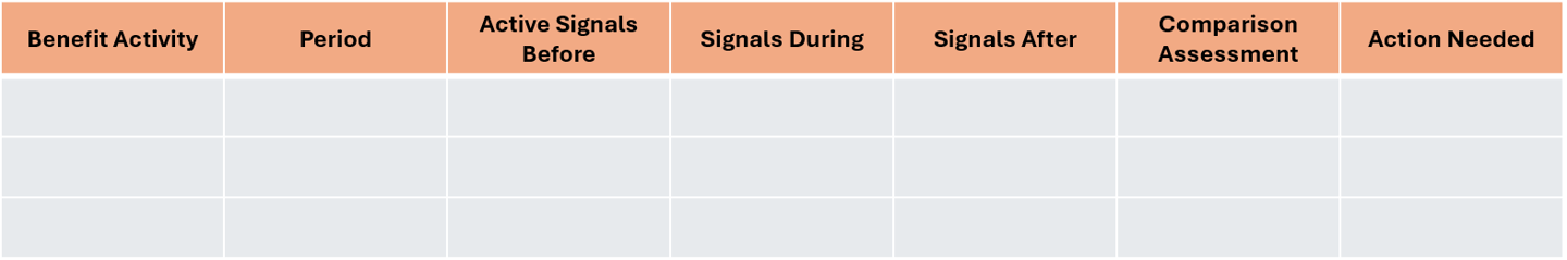 Fillable Template: Benefit Period Signal Comparison