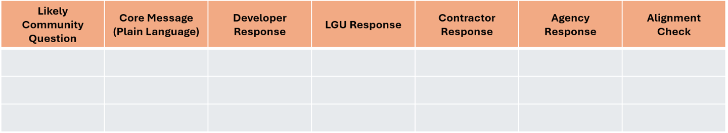 To ensure that developers, contractors, LGUs, and national agencies give consistent answers when community members ask about the project. Inconsistent messaging, even when individually accurate, is interpreted by communities as deception or disorganization, and erodes trust rapidly.