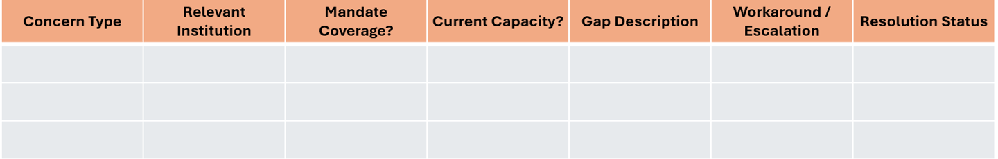 3. Identify any concern types for which no institution has a clear mandate, these are governance gaps.
