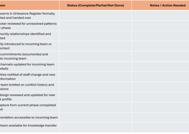 5. Verify that all open concerns in the Grievance Register are formally handed over.